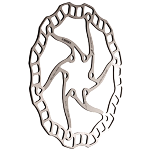 ASHIMA エアーローター 160mm \2,200 (税込) 140mm(¥1,870)・180mm(¥2,640)も有ります。 重量:70g(140mm)/85g(160mm)/115g(180mm) どうせぶつけて曲がってしまうなら、安価なのはうれしいですね! 軽いし制動力もなかなか好評です。 |